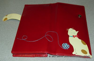 I love how, when the wallet is closed, the cat’s tail disappears at the bottom corner and then reappears at the top as the clasp. This wallet was $28.99 (plus tax) at Sidecar – they carry a good selection of espe wallets and bags.