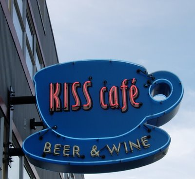 I haven’t had anything to eat or drink at KISS Cafe, I’ve just always liked this sign. The cafe has some vegetarian menu options, but nothing natively vegan. (The menu is available from their Web site — for some reason, it’s saved as a .zip file although it’s a single, two-page PDF, 110kb packed/117kb unpacked.)