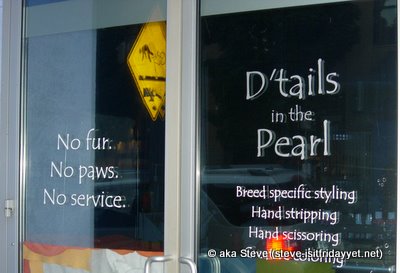 “No fur. No paws. No service.” D’tails dog salon, 416 NW 10th Ave.: