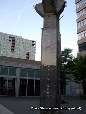 The Lovejoy Columns are located on NW 10th Ave., between NW Everett St. and NW Flanders St., Pearl District, Portland (courtyard of the Elizabeth Lofts).