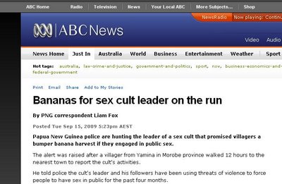 Bananas for sex; cult leader on the run (yes, this one lends a completely different meaning)