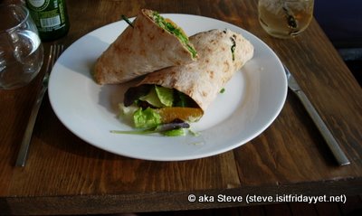 TB’s wrap was a delicious and filling blend of spicy (onions, peppers, and jalapeno aioli) and sweet (tangerine slices).